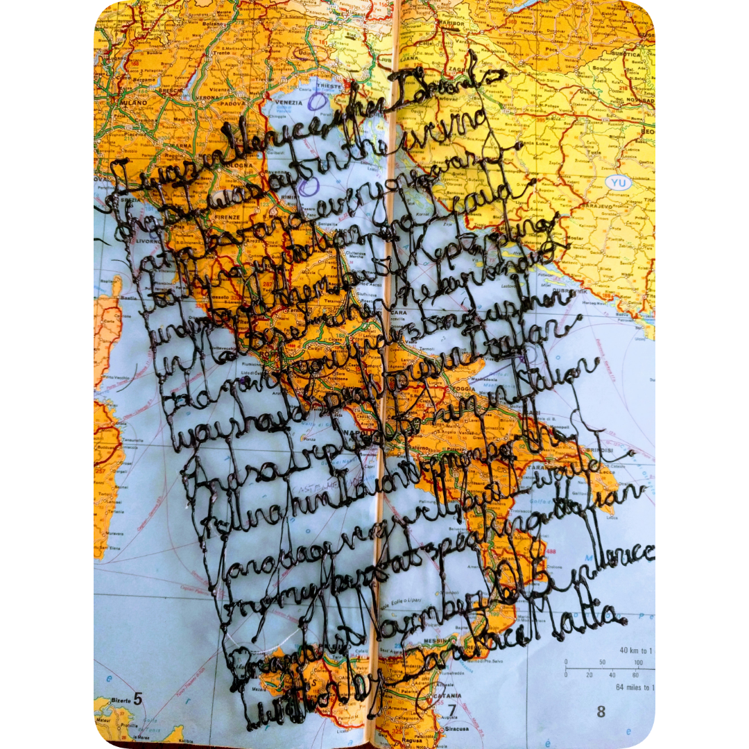 A dream about Italy – Dream text rendered in 3D printed plastic, describing a dream I had while in Italy