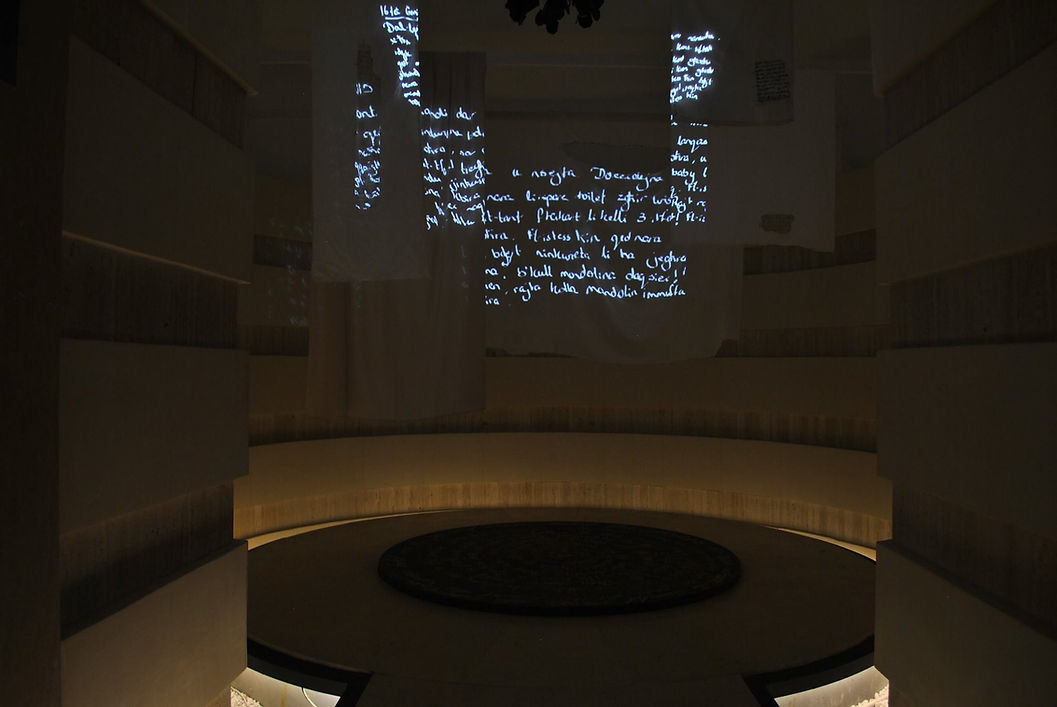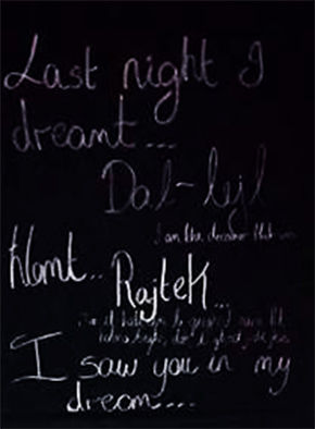 The use of overlapped text and the participation of the viewer are of essence to the work being displayed, since the viewer becomes part of the text, thus part of the dream space. This research and the resulting research project challenge the idea of fabrication by the dreaming mind, in order to make the viewer reconsider that which is truly ‘experienced’, ‘in reality’ and ‘in dreams’, which is most important, most effecting?