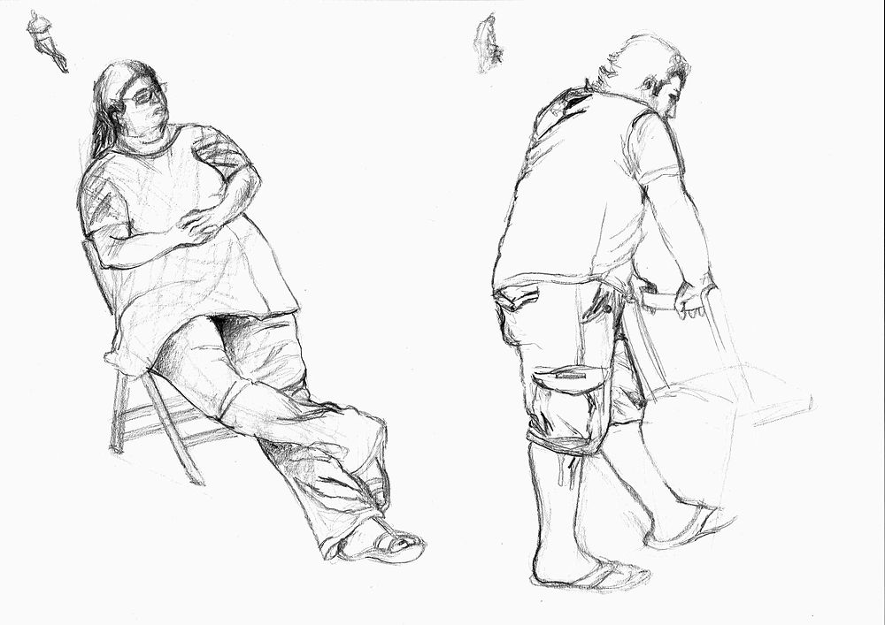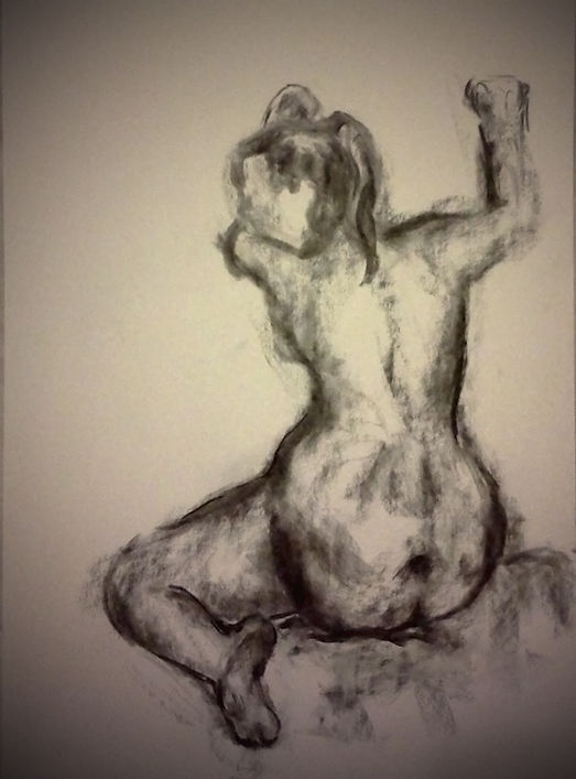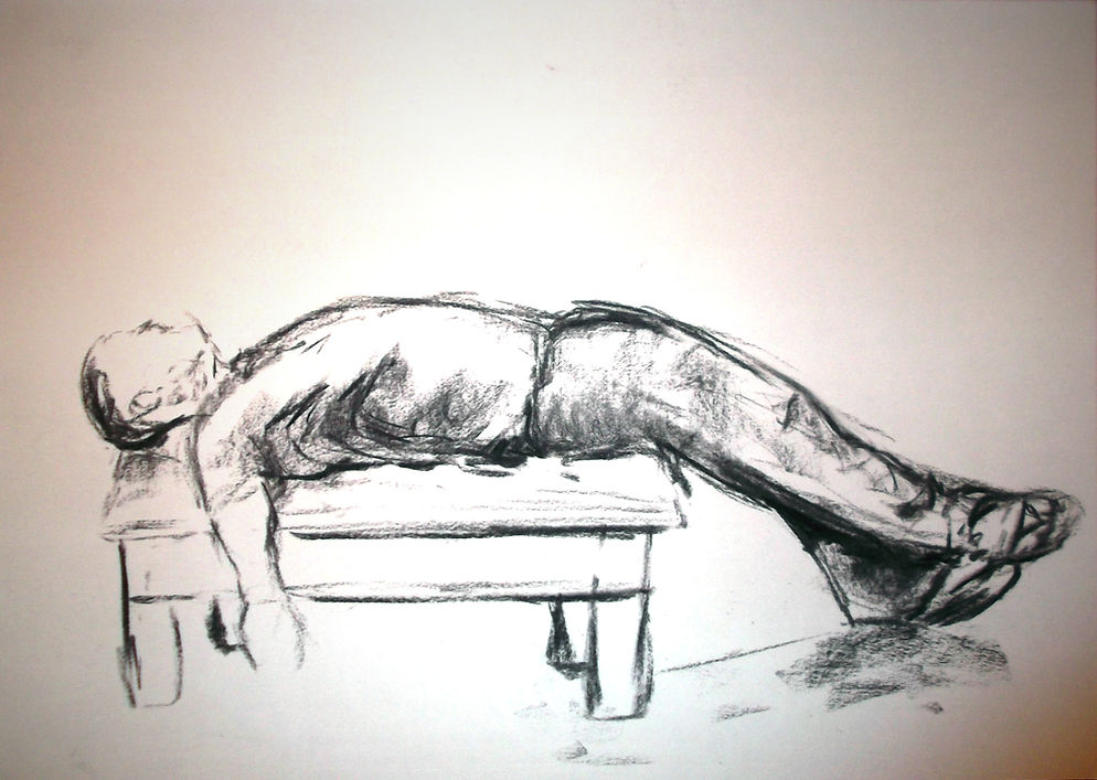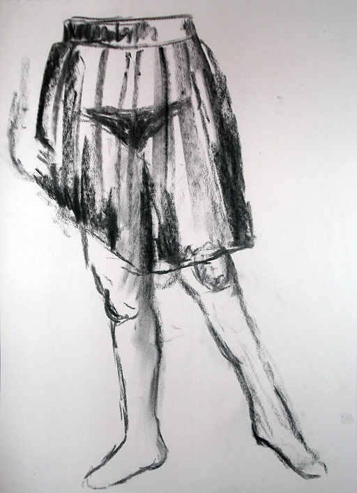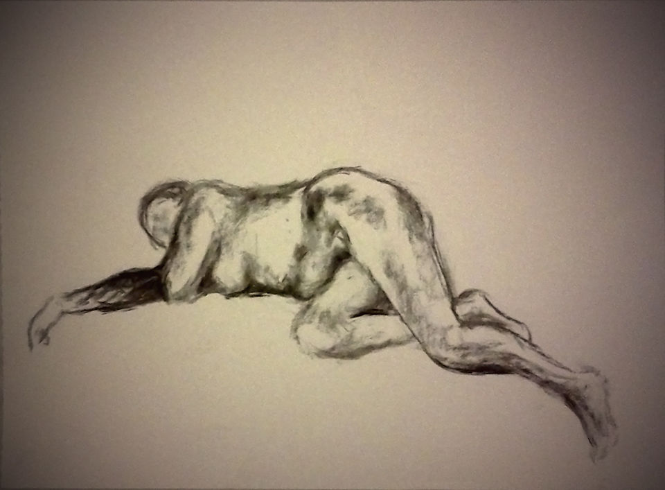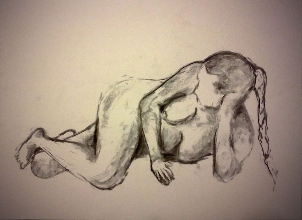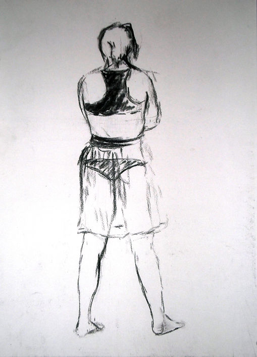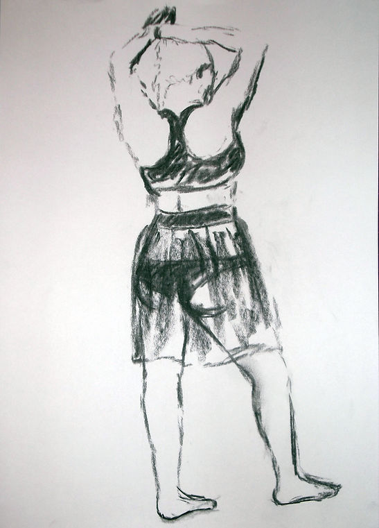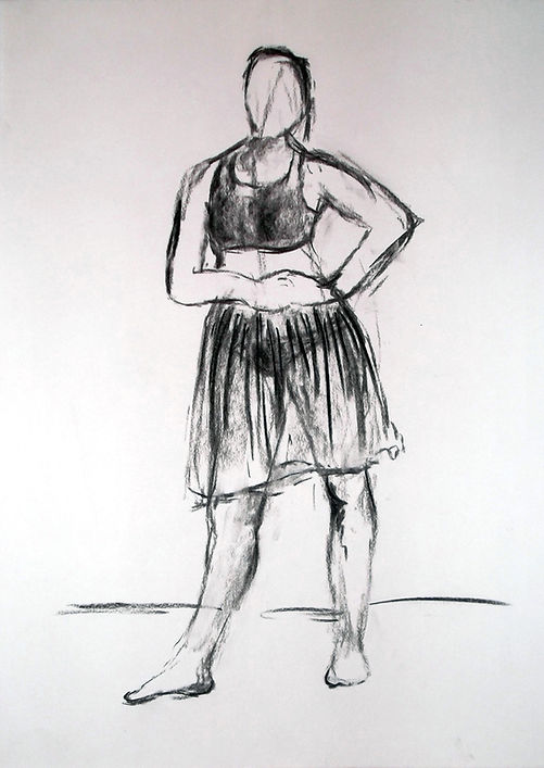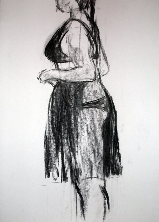 These drawings are a selection from a number of figure studies conducted in monochrome through charcoal and pencil.