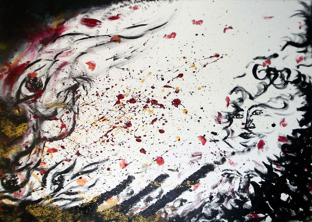 These works evolved from studies of the nature of paint as a representation of violence, through monotype printing thus each work is slightly different from the next.